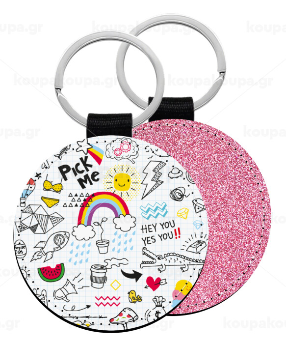 Doodle kids, Μπρελόκ Δερματίνη, στρογγυλό ΡΟΖ (5cm)
