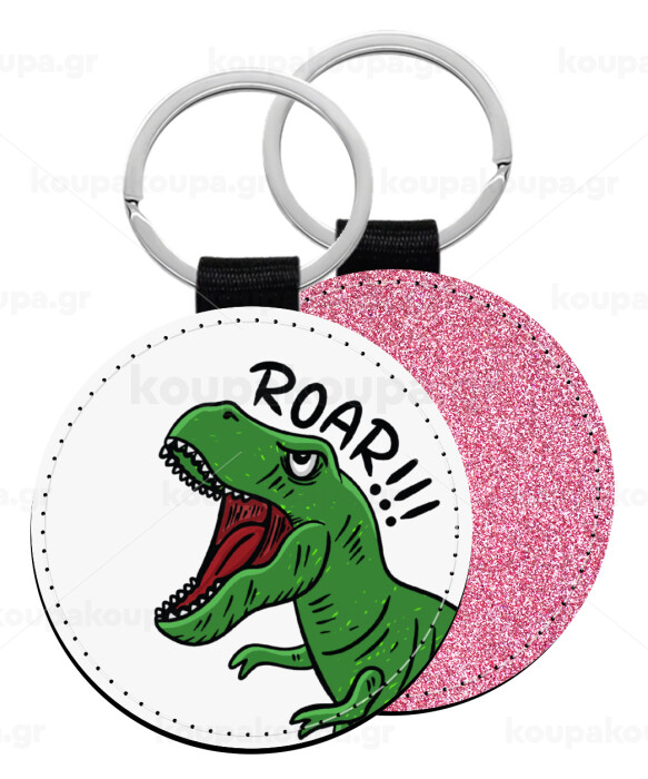 Dyno roar!!!, Μπρελόκ Δερματίνη, στρογγυλό ΡΟΖ (5cm)
