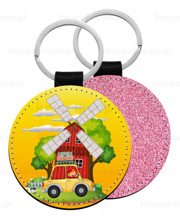 Toy car, Μπρελόκ Δερματίνη, στρογγυλό ΡΟΖ (5cm)