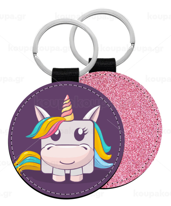 Unicorns cube, Μπρελόκ Δερματίνη, στρογγυλό ΡΟΖ (5cm)