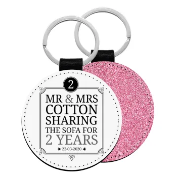 Mr & Mrs Sharing the sofa, Μπρελόκ Δερματίνη, στρογγυλό ΡΟΖ (5cm)