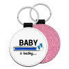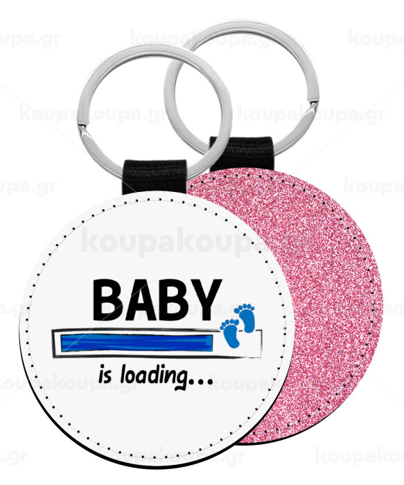 Baby is Loading BOY, Μπρελόκ Δερματίνη, στρογγυλό ΡΟΖ (5cm)