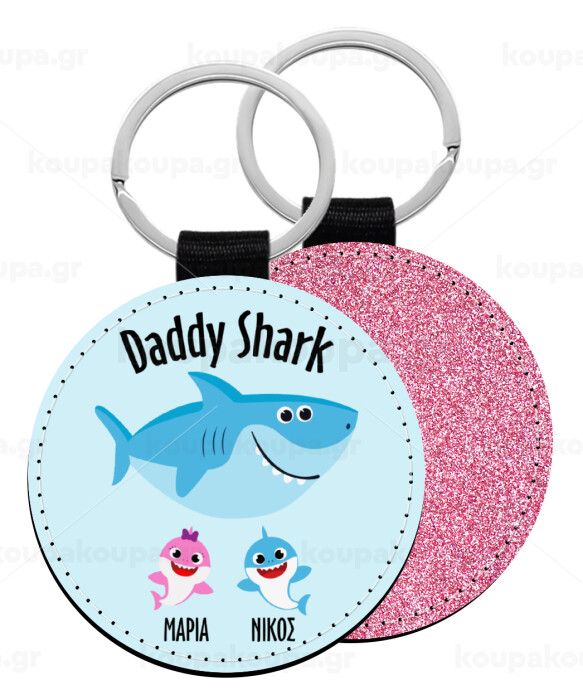 Daddy Shark (με ονόματα παιδικά), Μπρελόκ Δερματίνη, στρογγυλό ΡΟΖ (5cm)