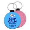 KEEP CALM baby boy is coming soon!!!, Μπρελόκ Δερματίνη, στρογγυλό ΡΟΖ (5cm)