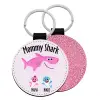 Mommy Shark (με ονόματα παιδικά), Μπρελόκ Δερματίνη, στρογγυλό ΡΟΖ (5cm)