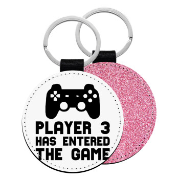 Player 3 has entered the Game, Μπρελόκ Δερματίνη, στρογγυλό ΡΟΖ (5cm)