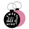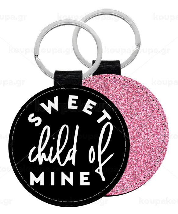 Sweet child of mine!, Μπρελόκ Δερματίνη, στρογγυλό ΡΟΖ (5cm)