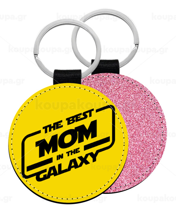 The Best MOM in the Galaxy, Μπρελόκ Δερματίνη, στρογγυλό ΡΟΖ (5cm)