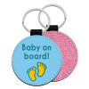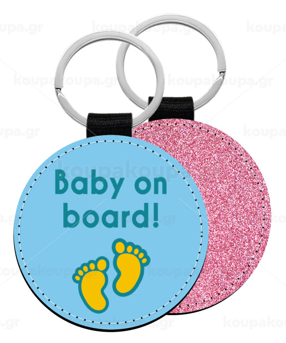 Baby on Board πατουσα Αγόρι, Μπρελόκ Δερματίνη, στρογγυλό ΡΟΖ (5cm)