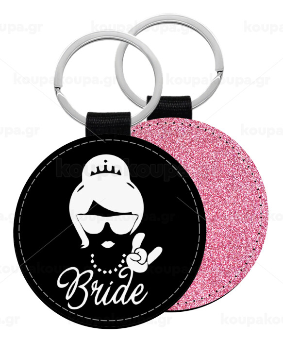 Bride hands, Μπρελόκ Δερματίνη, στρογγυλό ΡΟΖ (5cm)