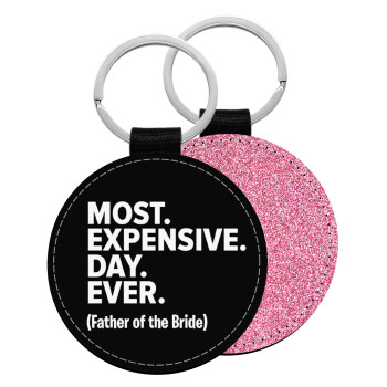 Most expensive day ever, Μπρελόκ Δερματίνη, στρογγυλό ΡΟΖ (5cm)