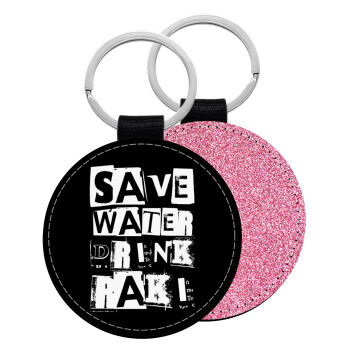 Save Water, Drink RAKI, Μπρελόκ Δερματίνη, στρογγυλό ΡΟΖ (5cm)