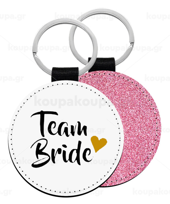 Team Bride, Μπρελόκ Δερματίνη, στρογγυλό ΡΟΖ (5cm)