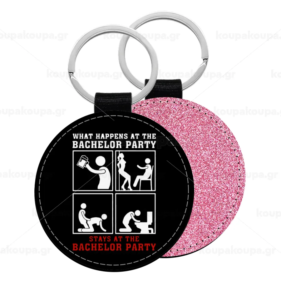 What happens at the bachelor party, stays at the bachelor party!, Μπρελόκ Δερματίνη, στρογγυλό ΡΟΖ (5cm)
