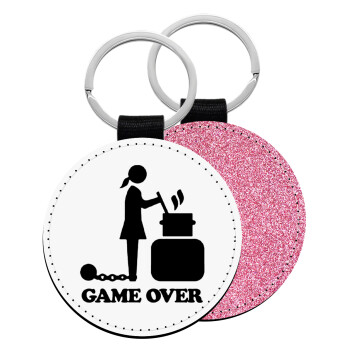 Woman Game Over, Μπρελόκ Δερματίνη, στρογγυλό ΡΟΖ (5cm)