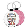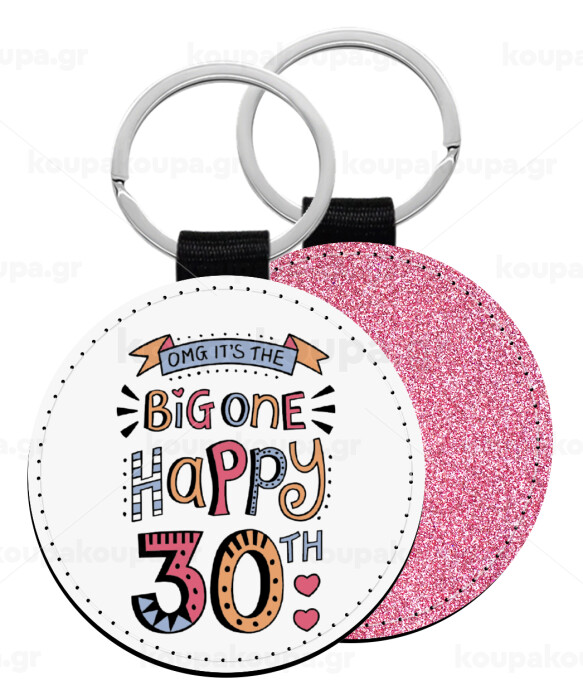 Big one Happy 30th, Μπρελόκ Δερματίνη, στρογγυλό ΡΟΖ (5cm)