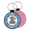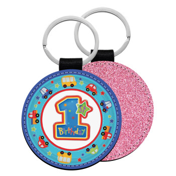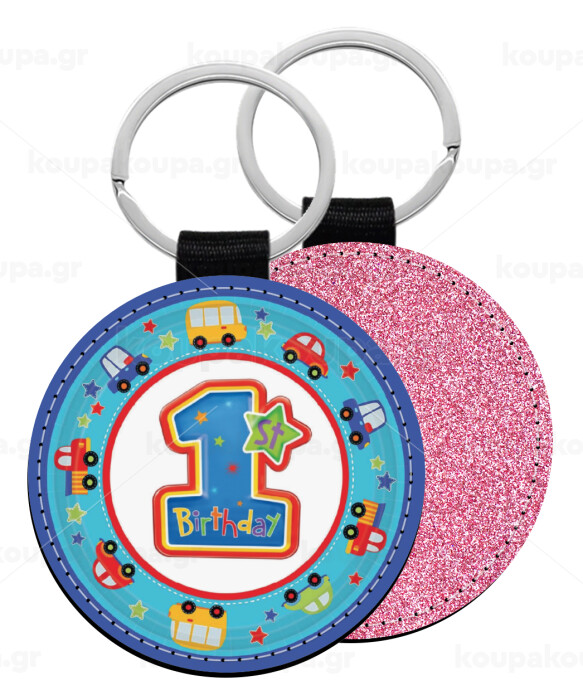 Happy 1st Birthday, Μπρελόκ Δερματίνη, στρογγυλό ΡΟΖ (5cm)