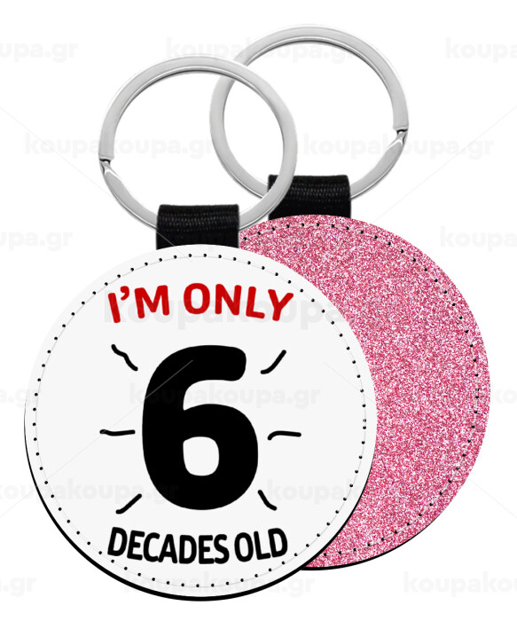 I'm only NUMBER decades OLD, Μπρελόκ Δερματίνη, στρογγυλό ΡΟΖ (5cm)