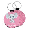 Η νονά μου, ελεφαντάκι ροζ, Μπρελόκ Δερματίνη, στρογγυλό ΡΟΖ (5cm)