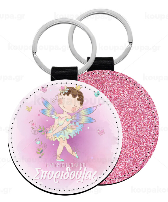 Η νονά μου, Νεράϊδα, Μπρελόκ Δερματίνη, στρογγυλό ΡΟΖ (5cm)