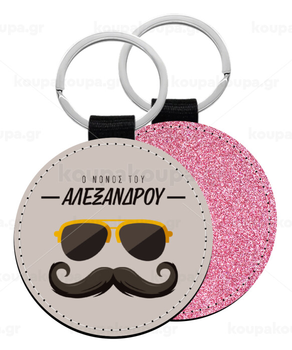 Ο νονός μου, μουστάκι με γυαλιά, Μπρελόκ Δερματίνη, στρογγυλό ΡΟΖ (5cm)
