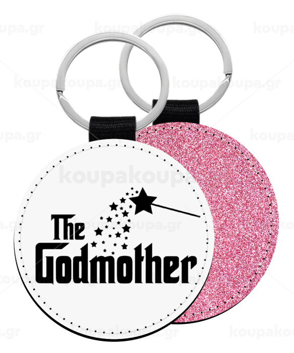 Fairy GodMother, Μπρελόκ Δερματίνη, στρογγυλό ΡΟΖ (5cm)