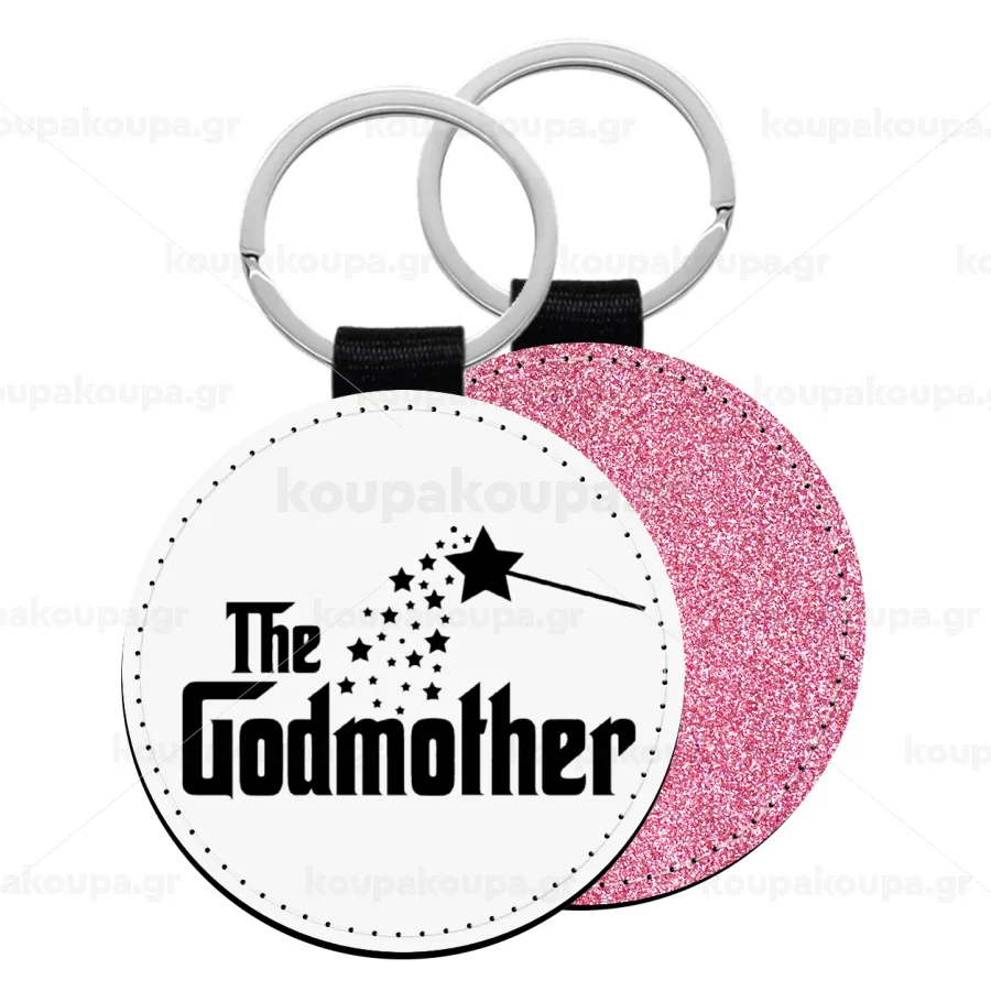 Fairy GodMother, Μπρελόκ Δερματίνη, στρογγυλό ΡΟΖ (5cm)