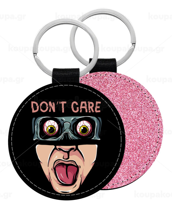 Don't Care, Μπρελόκ Δερματίνη, στρογγυλό ΡΟΖ (5cm)
