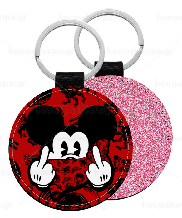 Mickey the fingers, Μπρελόκ Δερματίνη, στρογγυλό ΡΟΖ (5cm)