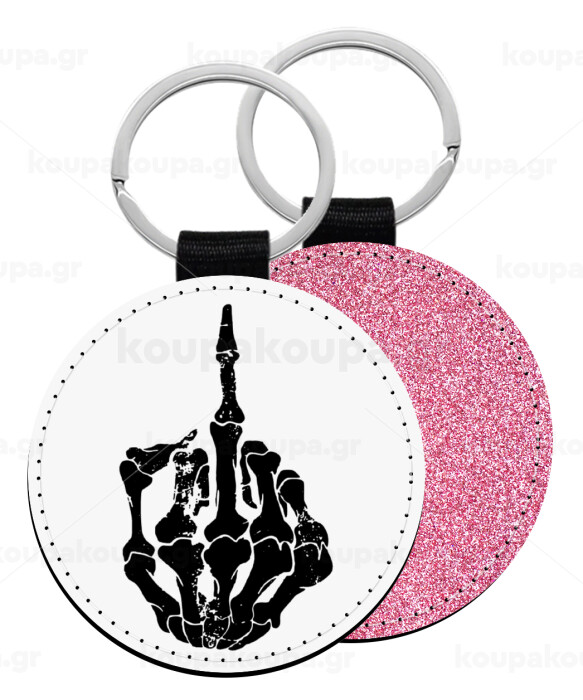 Middle finger, Μπρελόκ Δερματίνη, στρογγυλό ΡΟΖ (5cm)