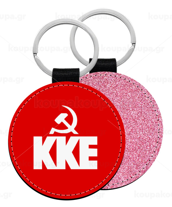ΚΚΕ, Μπρελόκ Δερματίνη, στρογγυλό ΡΟΖ (5cm)