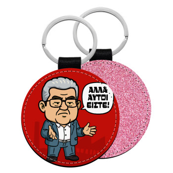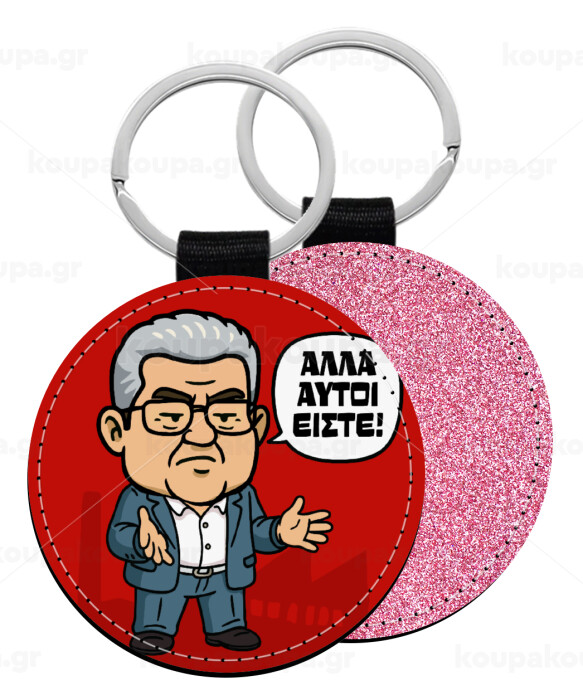 Κουτσούμπας, "Αλλά αυτοί είστε!", Μπρελόκ Δερματίνη, στρογγυλό ΡΟΖ (5cm)