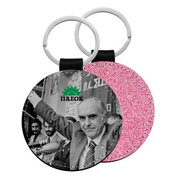 ΠΑΣΟΚ Ανδρέας, Μπρελόκ Δερματίνη, στρογγυλό ΡΟΖ (5cm)