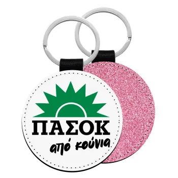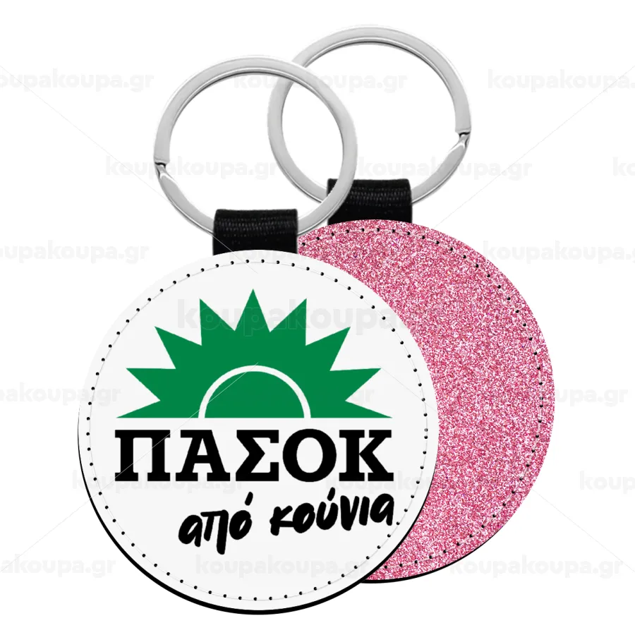 ΠΑΣΟΚ από κούνια, Μπρελόκ Δερματίνη, στρογγυλό ΡΟΖ (5cm)