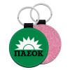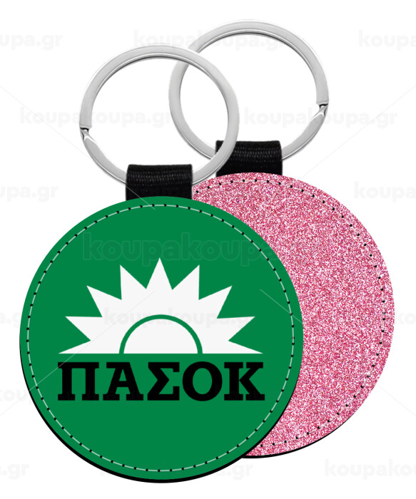 PASOK green, Μπρελόκ Δερματίνη, στρογγυλό ΡΟΖ (5cm)