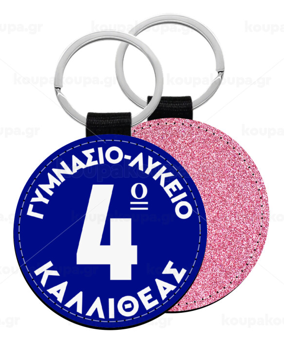 Έμβλημα Σχολικό μπλε κλασικό, Μπρελόκ Δερματίνη, στρογγυλό ΡΟΖ (5cm)