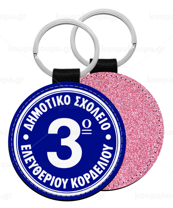 Έμβλημα Σχολικό μπλε, Μπρελόκ Δερματίνη, στρογγυλό ΡΟΖ (5cm)