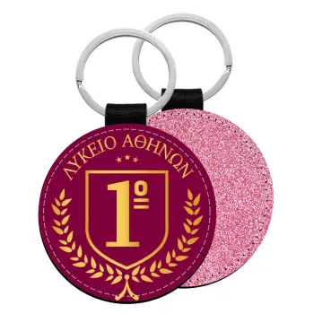Έμβλημα Σχολικό μπορντό, Μπρελόκ Δερματίνη, στρογγυλό ΡΟΖ (5cm)