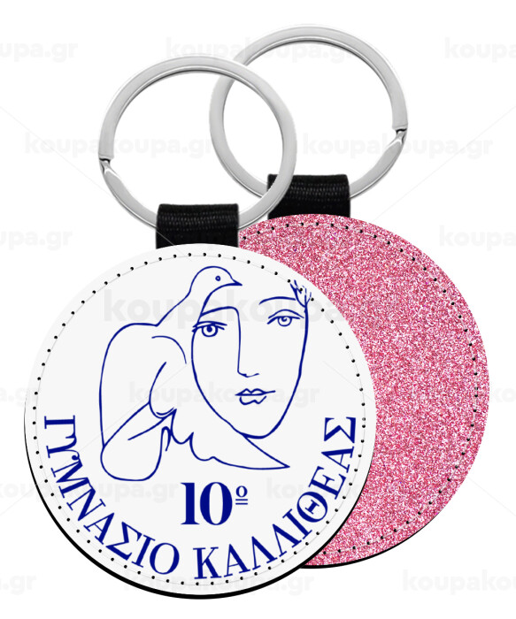 Έμβλημα Σχολικό, Μπρελόκ Δερματίνη, στρογγυλό ΡΟΖ (5cm)