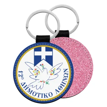 Σχολικό σήμα περιστέρι με δάφνες, Μπρελόκ Δερματίνη, στρογγυλό ΡΟΖ (5cm)