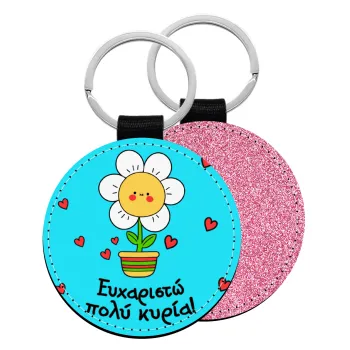 Ευχαριστώ πολύ κυρία!!!, Μπρελόκ Δερματίνη, στρογγυλό ΡΟΖ (5cm)