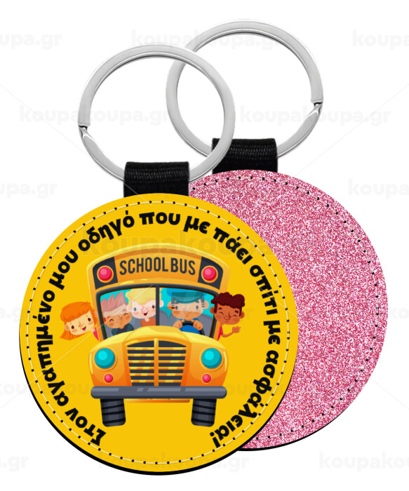Στον αγαπημένο μου οδηγό που με πάει σπίτι με ασφάλεια!, Μπρελόκ Δερματίνη, στρογγυλό ΡΟΖ (5cm)