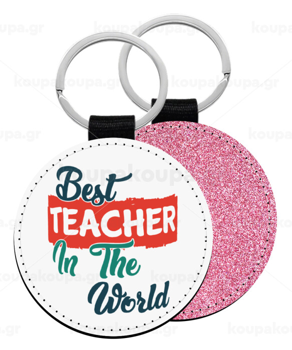 Best teacher in the World!, Μπρελόκ Δερματίνη, στρογγυλό ΡΟΖ (5cm)