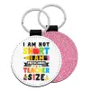I Am Not Short I Am Preschool Teacher Size, Μπρελόκ Δερματίνη, στρογγυλό ΡΟΖ (5cm)