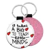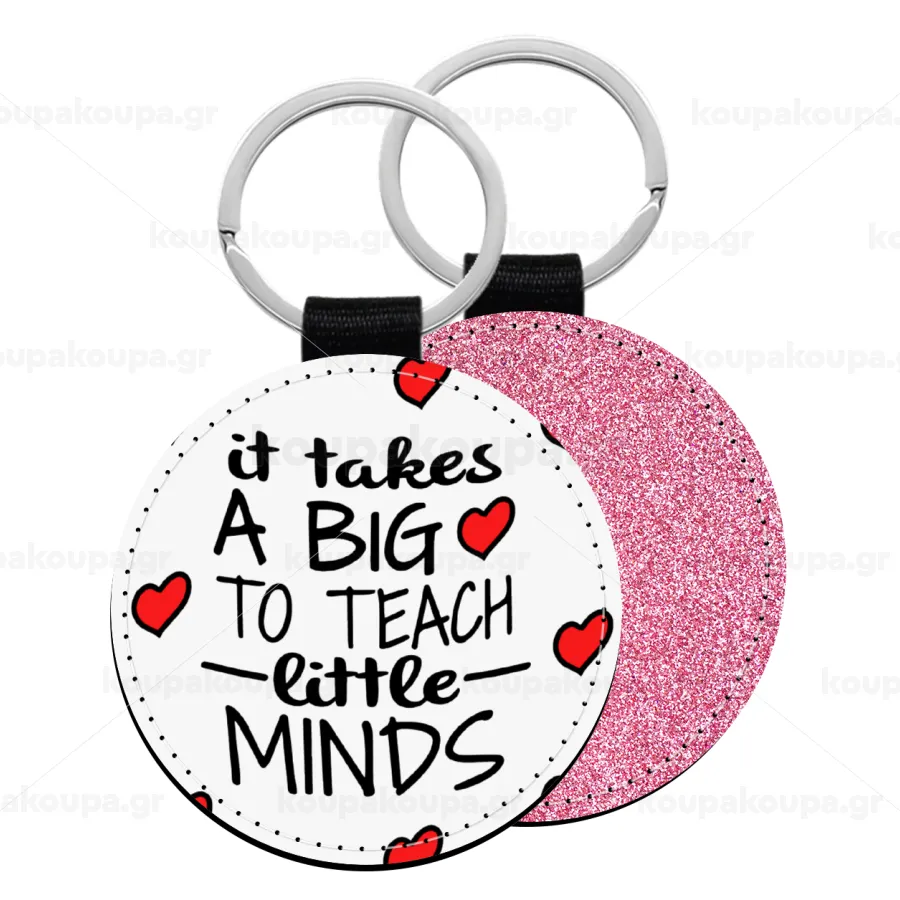 It takes big heart to teach little minds, Μπρελόκ Δερματίνη, στρογγυλό ΡΟΖ (5cm)