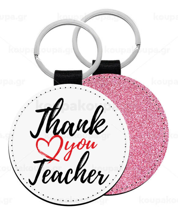 Thank you teacher, Μπρελόκ Δερματίνη, στρογγυλό ΡΟΖ (5cm)