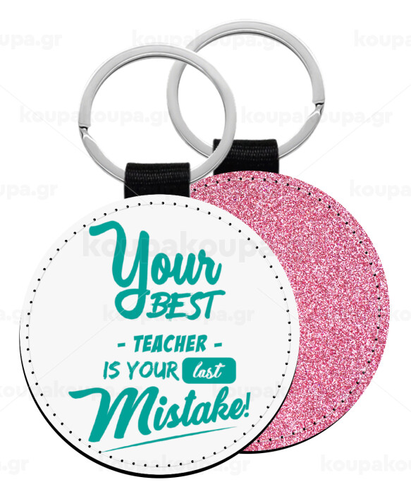 Your best teacher is your last mistake, Μπρελόκ Δερματίνη, στρογγυλό ΡΟΖ (5cm)