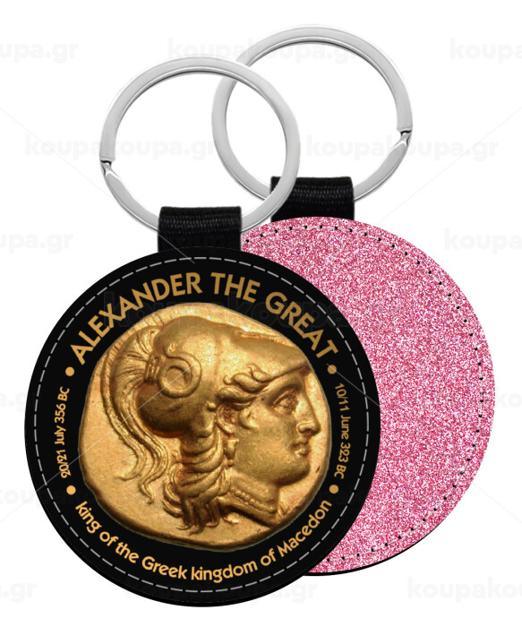 Alexander the Great, Μπρελόκ Δερματίνη, στρογγυλό ΡΟΖ (5cm)