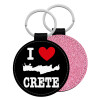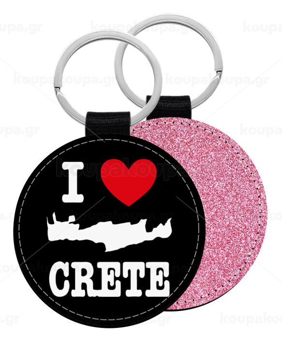 I Love Crete, Μπρελόκ Δερματίνη, στρογγυλό ΡΟΖ (5cm)