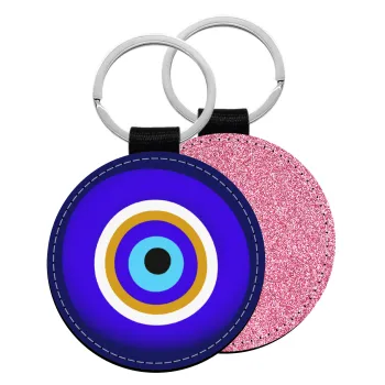 Το μάτι, Μπρελόκ Δερματίνη, στρογγυλό ΡΟΖ (5cm)